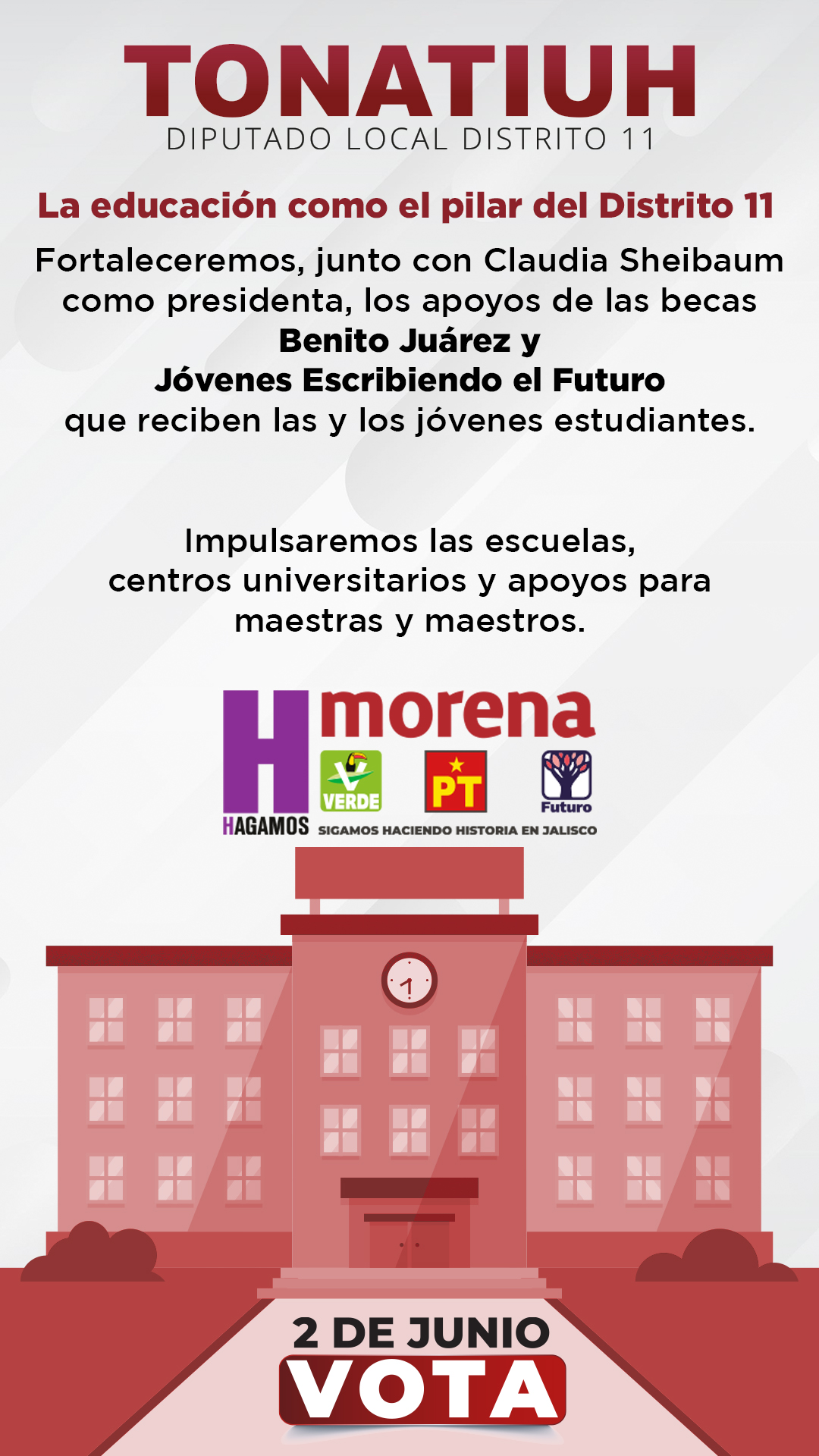 Promover la educación y la cultura, enfrentar el grave problema de la inseguridad, así como erradicar el acoso y violencia contra las mujeres; acciones contra la corrupción y la impunidad, serán, entre otras tareas, mi principal compromiso para el Distrito 11 y el oriente de nuestra ciudad.