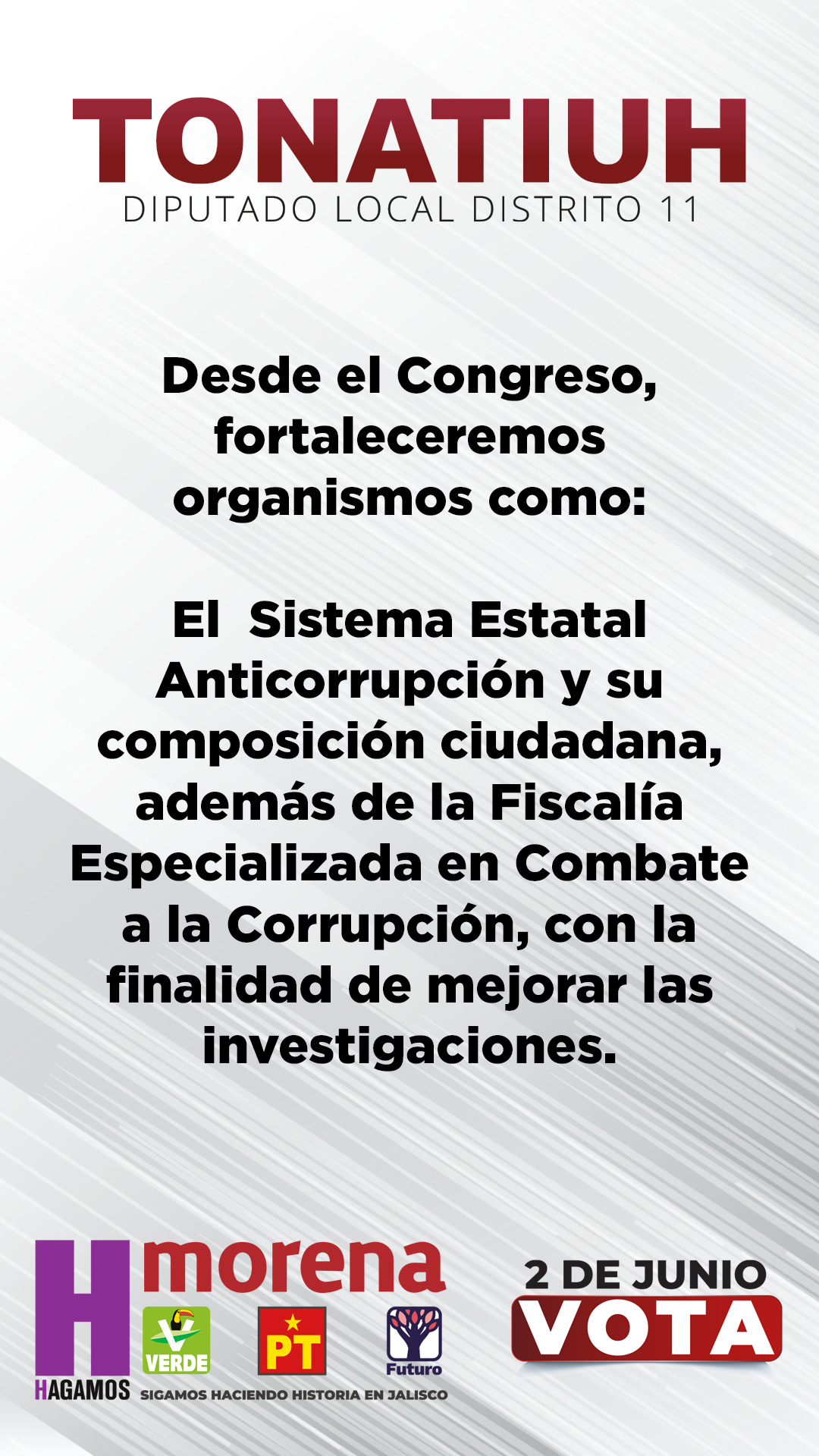 Promover la educación y la cultura, enfrentar el grave problema de la inseguridad, así como erradicar el acoso y violencia contra las mujeres; acciones contra la corrupción y la impunidad, serán, entre otras tareas, mi principal compromiso para el Distrito 11 y el oriente de nuestra ciudad.